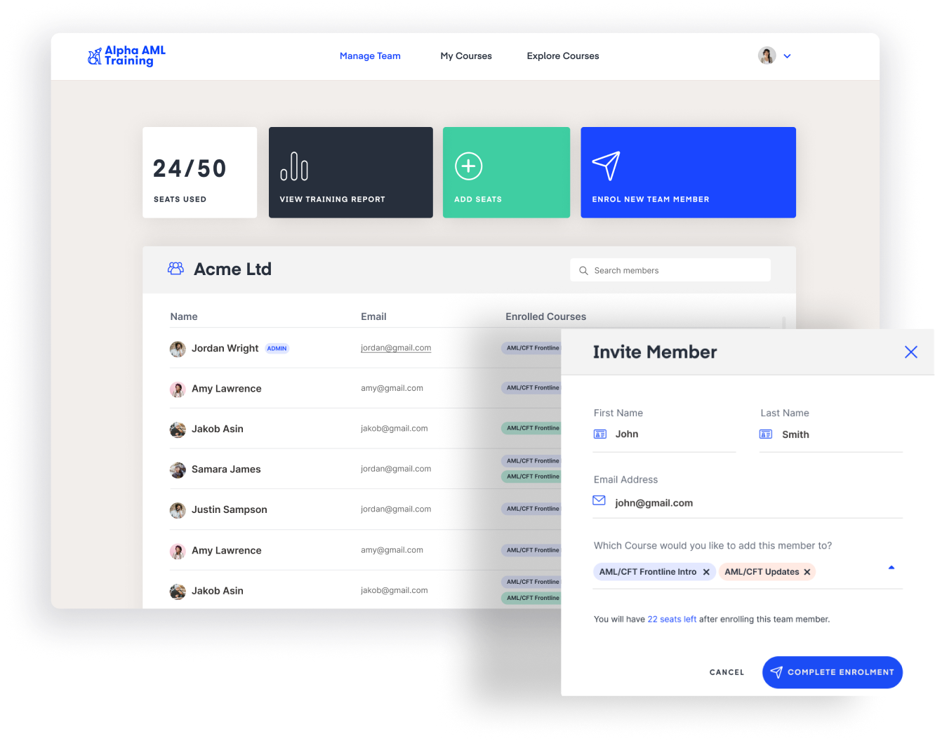 Alpha AML Training is designed to make training easy to implement across busy teams. With our easy-to-use dashboard, you can enroll staff, track training progress and store training records, all without complex systems or manual follow-ups.